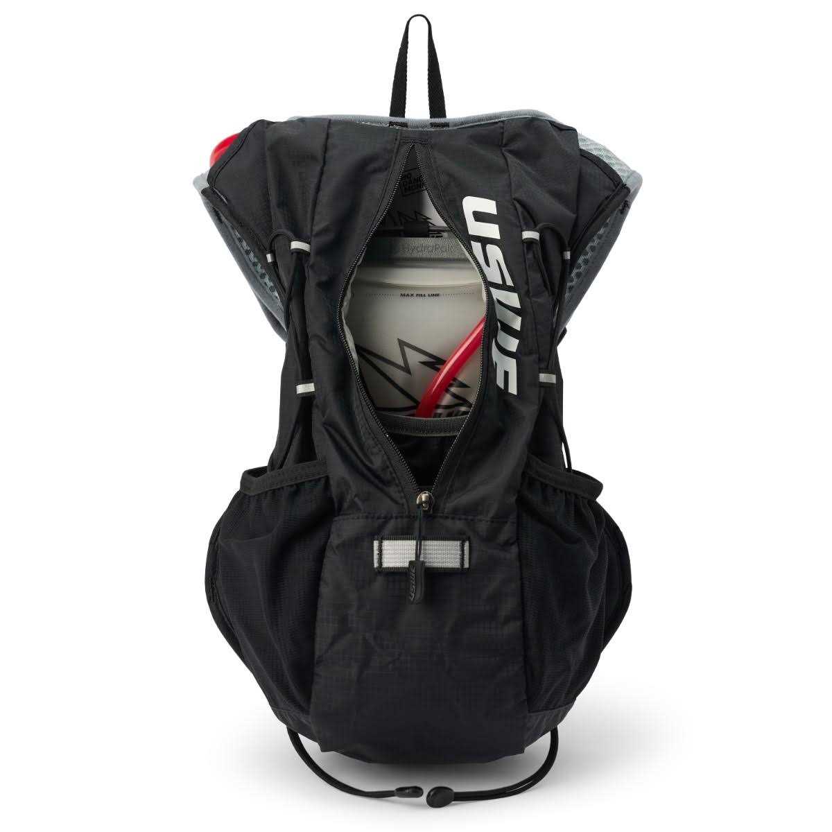 • The hydration pack sits well thanks to the compression sleeve and the drinking tube is easily and securely connected with the tube clip