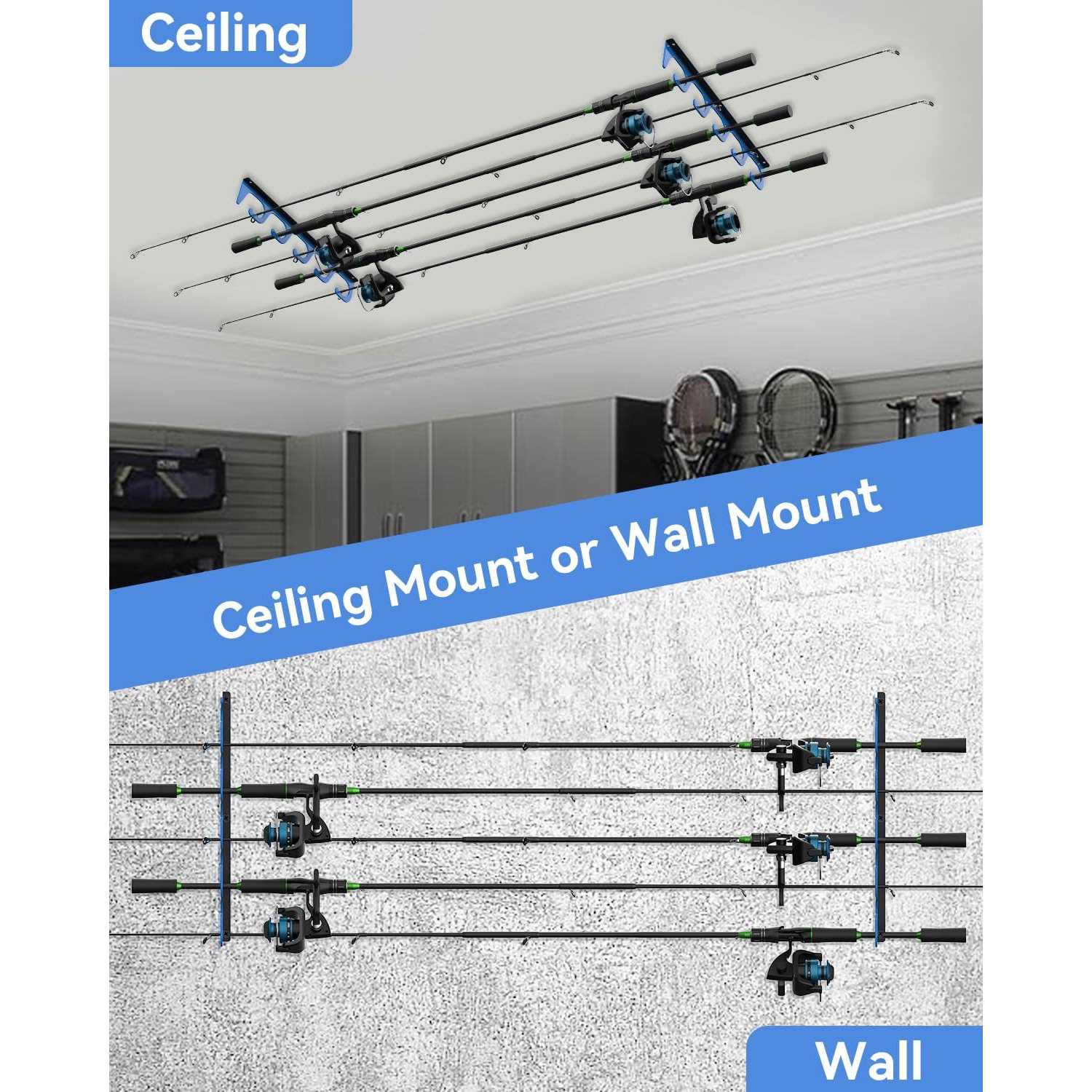 WellMall Fishing Rod Pole Holders 10 Fishing Rod Pole Holder Storage for Wall & Garage Ceiling Mount