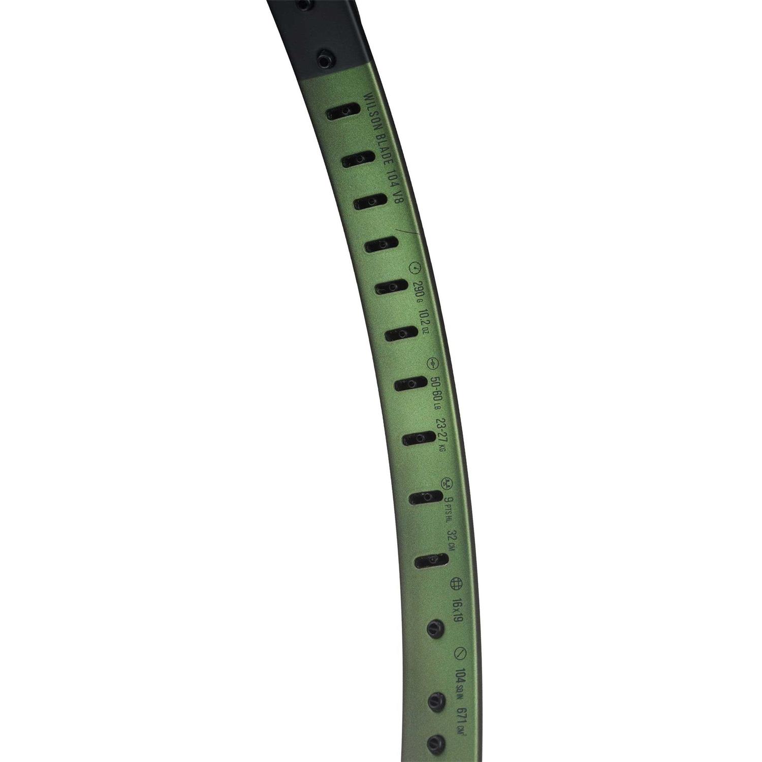 Wilsons iconic Blade series updates to version 8 for 2021 The Blade 104 v8 pairs a captivating design with a new layup to better accommodate the more modern, vertical swing path commonly used by competitive players. Wilsons all-new version 8 Blades headline innovation FORTYFIVE, manages to increase both the flexibility and stability of the frame to lend supreme feel for the ball on every shot. Still characterized by its superior presence in the hands of the best players in the world, this evolution of Blade rewards aggressive, precise ball-strikers with a top-tier blend of connected-to-the-ball feel, torsional stability and color-shifting design to wow teammates and opponents alike. Another great update to the Blade v8 includes DirectConnect in which Wilson extends the carbon fiber handle to connect directly to the end cap for improved feel and enhanced torsional stability. Wilson also includes Top Grip Taper which provides a better feel for top-hand grip placement. Wilson continues the use of a Braided Graphite Basalt composition improves the flex of the racquet to produce enhanced feel and control. Parallel Drilling provides a consistent, more forgiving string bed response. The Ergonomic End Cap helps yield improved comfort and playability. Overall, the Blade 104 v8 features a slightly larger 104 square-inch head, with a solid 11 ounce-strung weight to go with a more open 16×19 string pattern — all adding up to a frame that fits a wide range of players seeking a nice punch of power to go with the Blades patented feel and control.