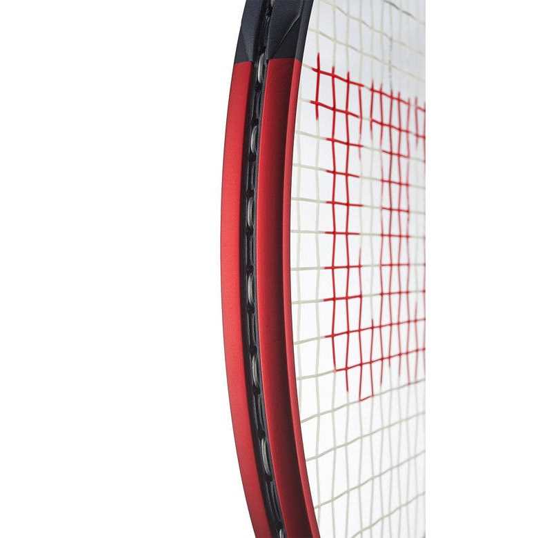 The Wilson Clash 25 v2 sets the bar high for design, comfort and game-changing performance. Coated with a rich red finish for a sleek look, this junior racquet feels incredibly arm-friendly thanks to its FORTYFIVE carbon construction. This layup design maximizes flexibility and stability through the swing, enabling young players to swing aggressively and confidently. A revised construction at the tip of the hoop allows for an enlarged sweet spot, allowing more forgiveness on off-center contact. The Wilson Clash 25 v2 features Agiplast plant-based end cap, bumper and grommets to add an element of sustainability and reduce its overall environmental footprint. Racquet Technology Parallel Drilling grommet construction provides a consistent, more forgiving string bed response while dramatically increasing the sweet spot. Vertical bending increases ball dwell time on string bed for players with more modern, vertical swings. Horizontal bending creates industry-leading flexibility for enhanced control on more traditional, horizontal swings. Torsional bending features proprietary carbon mapping to stabilize frame flexibility on off-center hits. Junior length and weight ideal for ages 8-10 FORTYFIVE comprises a patent-protected carbon construction that creates maximum flexibility and stability at impact for an uncompromising blend of power, control and feel Revised construction at tip of hoop supplies additional consistency and an enhanced sweet spot Design features red and black anodized matte finish for a clean, rich look on the court Agiplast plant-based bumper, grommet and end cap components reduce environmental footprint Racket comes pre-strung.