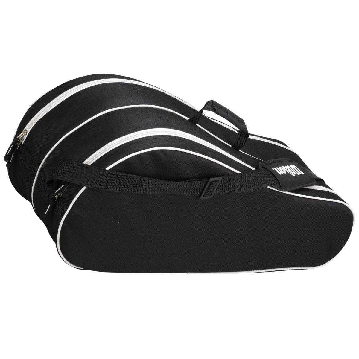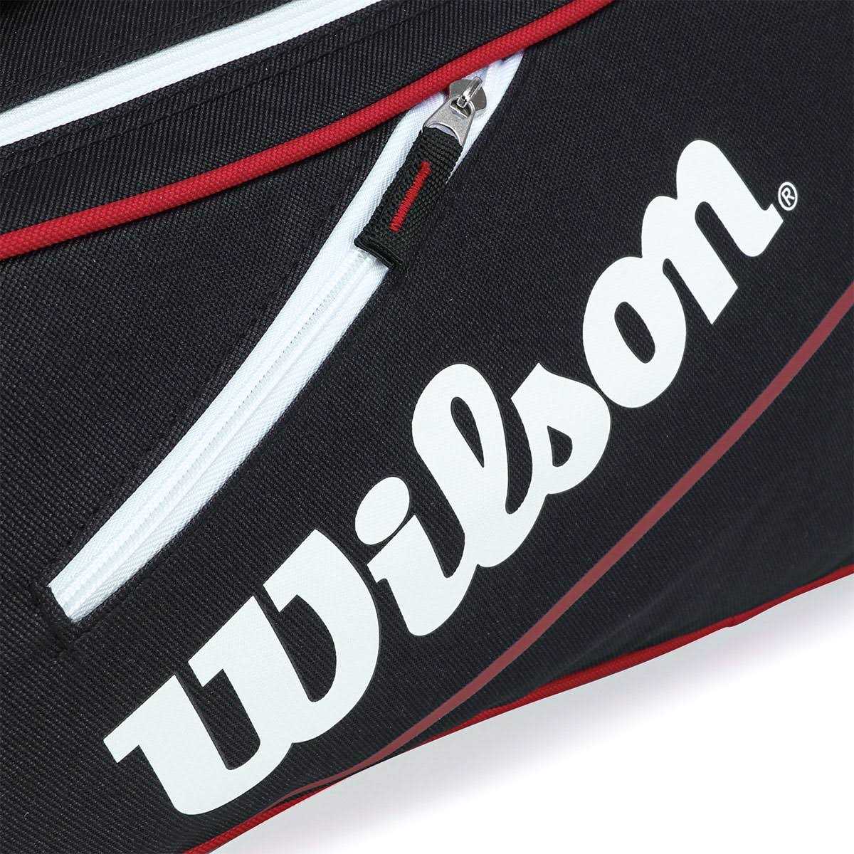 - The Wilson Advantage III is a stylish 6 racket bag with 2 main compartment and a front zipped pocket perfect for accessories.