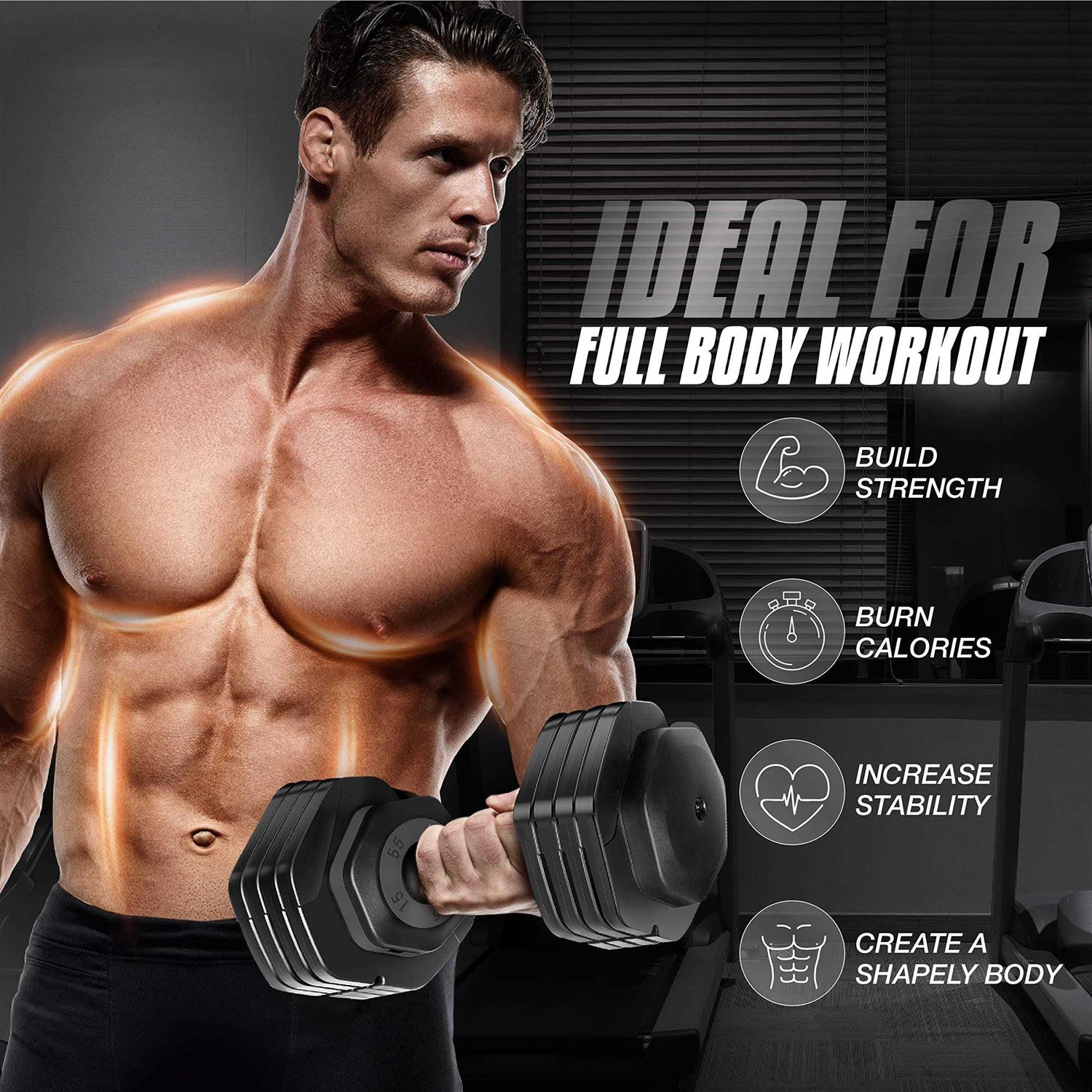 100% cast iron Imported HIGH QUALITY MATERIAL AND SAFE SYSTEM FOR SMOOTH EXPERIENCE: The dumbbell plates are made of steel and covered with highly durable PP plastic for anti rust; Ergonomic handle with an anti-slip texture for safety even when sweating; Enhances reliable structure in weight plates, preventing them from dropping during exercises ONE HAND AND ONE SECOND WEIGHT CHANGE: The weight selection dials system make it easy to adjust the weight in 1 second with just one hand; Simply turning the handle and hearing a “CLICK” sound, the weight is changed immediately; There are no knobs to turn, levers to slide, or pins to align. Just turn and lift! MULTI WEIGHT ADJUSTABLE FOR WIDELY APPLICATION: The weight can be adjusted to your level, ranging from 5 to 55 pounds, providing for diverse strength training; 5 different weights make our adjustable dumbbells set suitable for most exercises and all levels BUILD AND ACTIVATE ALL MUSCLES: 5 handy weight adjustment are suitable for basic body workouts, core fitness, and specific muscle groups. Ideal for anyone looking to gain strength, burn fat, build muscle or improve full-body strength SPACE SAVING HOME GYM: One core selectorized dumbbell equals 5 different weight dumbbells; the all-in-one compact design saves space at home. Keeping multiple weight blocks in one base tray makes it easier to store, move around, and protect the floor when not in use