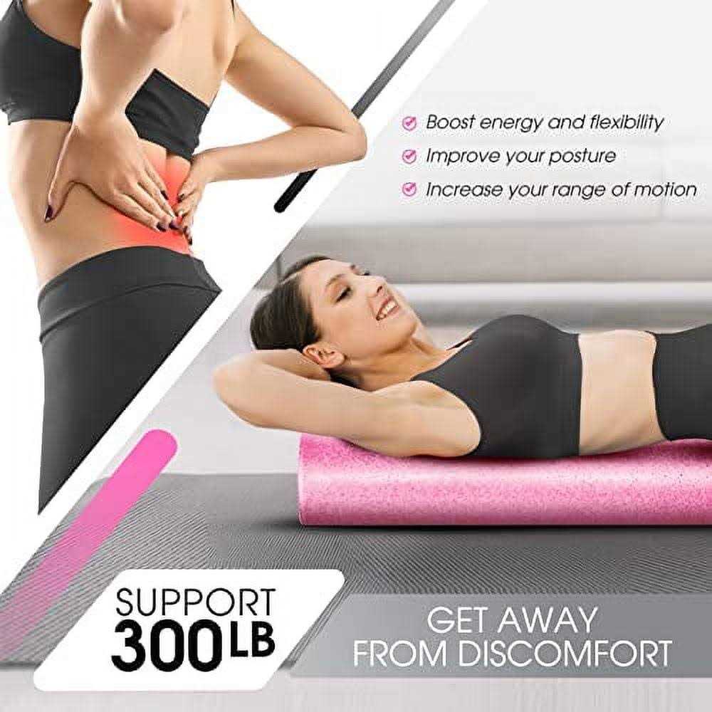 GREATER BENEFITS: Our foam roller for back with various sizes and colors enhances muscle recovery, massage, physical therapy, exercise, deep tissue work and improves flexibility, bodybuilding, running, weight training, and yoga. Use it during physical therapy sessions to rehabilitate and strengthen your body. THICKER FOR BETTER RESULT: High density EPP adds extra firmness to our body roller, making it suitable for professional trainers MULTIPLE SIZES: Our yoga roller is available in four sizes 36×6 inches for full back, 24×6 inches for more versatile and easier control, 18×6 inches for smaller muscle groups, and 12×6 inches for one specific area and saving space COMPACT DIMENSION: Measuring 36×6 inches, our EPP exercise roller is lightweight and easy to carry anywhere PRACTICAL AND VERSATILE: Our durable foam roller for legs is designed to hold up to 300 pounds and withstand even the toughest sessions with ease, taking your workout to the next level