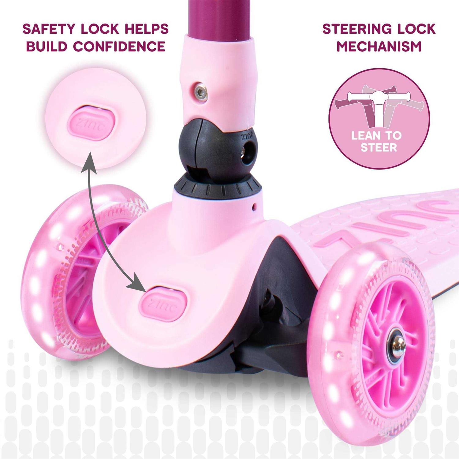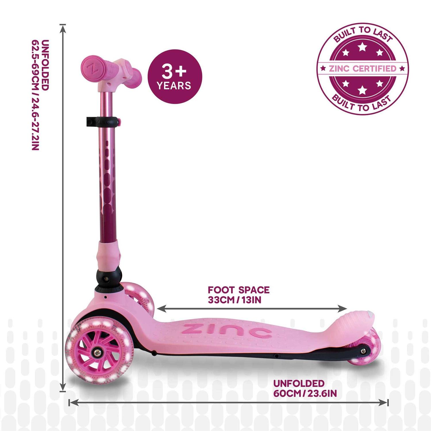 Zinc Flyte Three Wheeled Folding Scooter Foldable Kick Scooter with Light Up Wheels and Adjustable Height for Girls and Boys Ages 3+